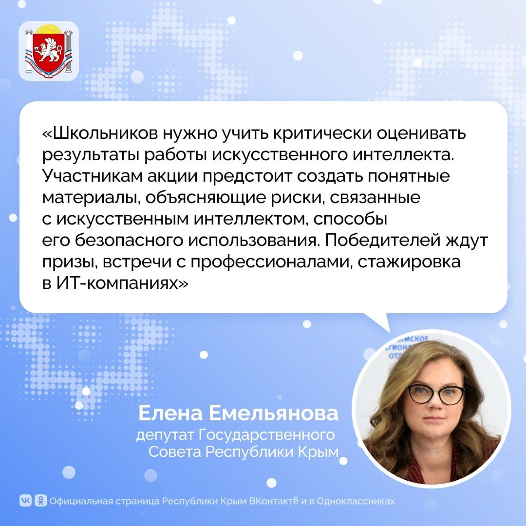 Она ориентирована на старшеклассников и студентов, которые в рамках участия будут проводить занятия для младших учащихся, посвящённые вопросам медиаграмотности, противодействия кибермошенничеству, цифровой безопасности и рискам использования искусственного интеллекта.
