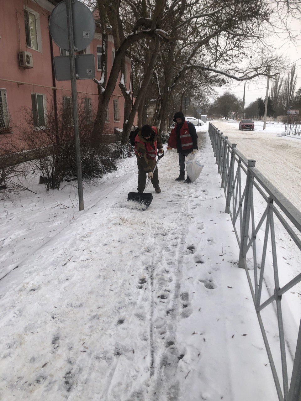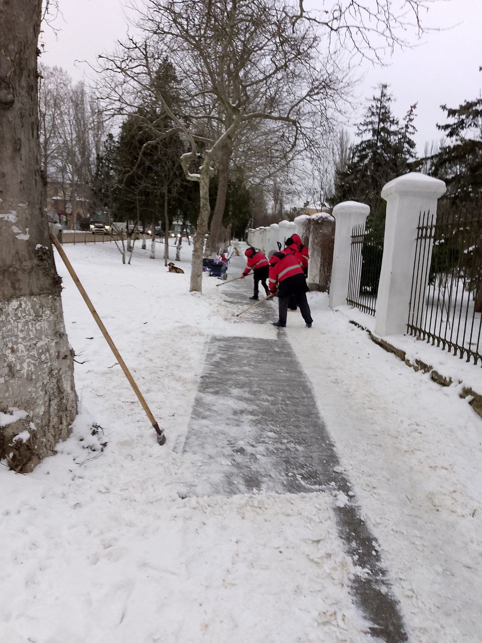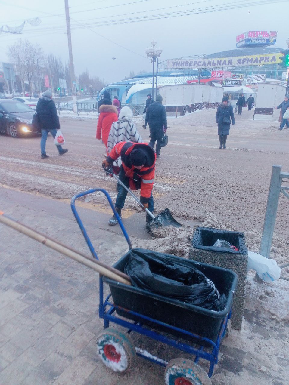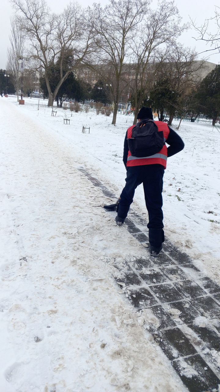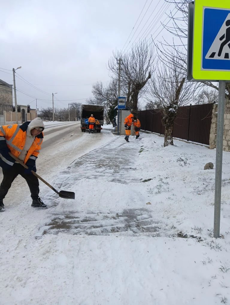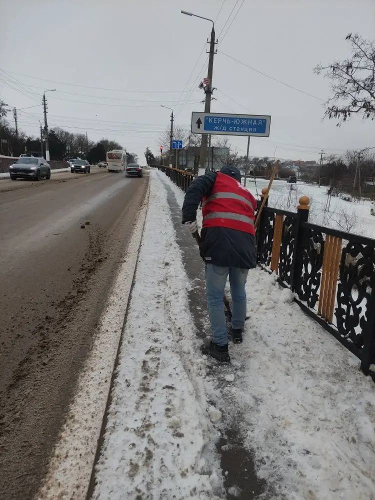Также сотрудники Керченского филиала ГУП РК «Крымавтодор» вручную расчищают снег вокруг остановок по всему городу.