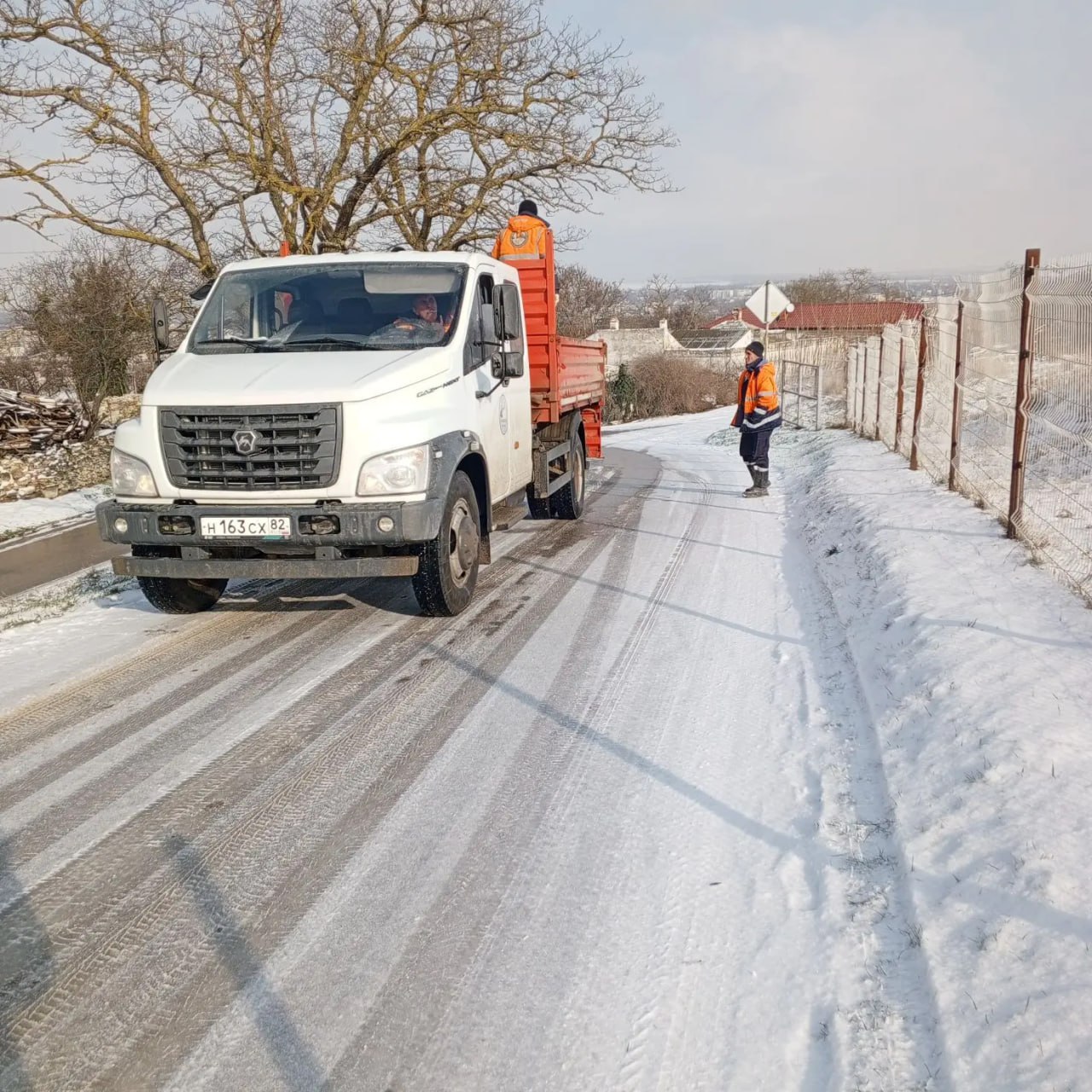 В городе продолжает сохраняться морозная снежная погода, в связи с чем коллектив керченского ДРСУ работает в усиленном круглосуточном режиме.