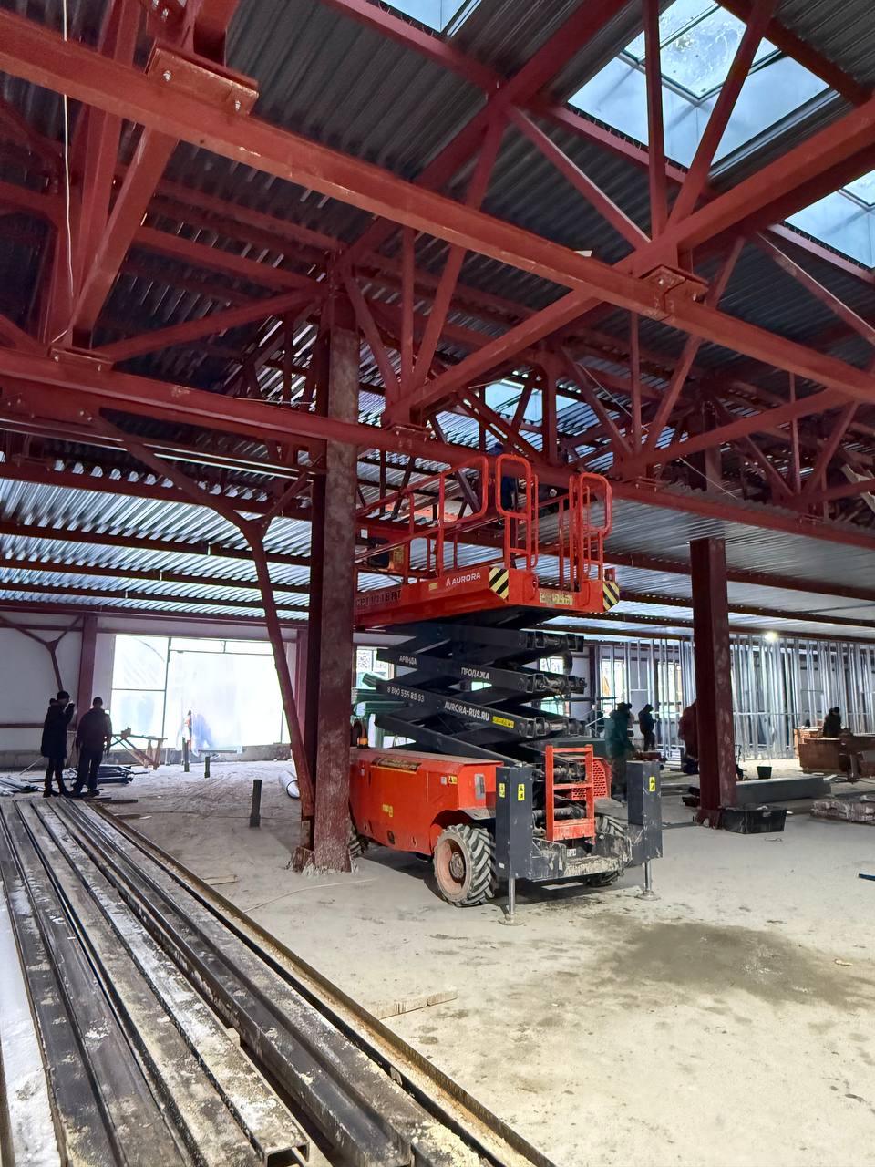 Ежедневно на объекте трудится не менее 70 человек. В настоящее время ведется монтаж модульной конструкции – устройство внутренних перегородок, наружных инженерных сетей.