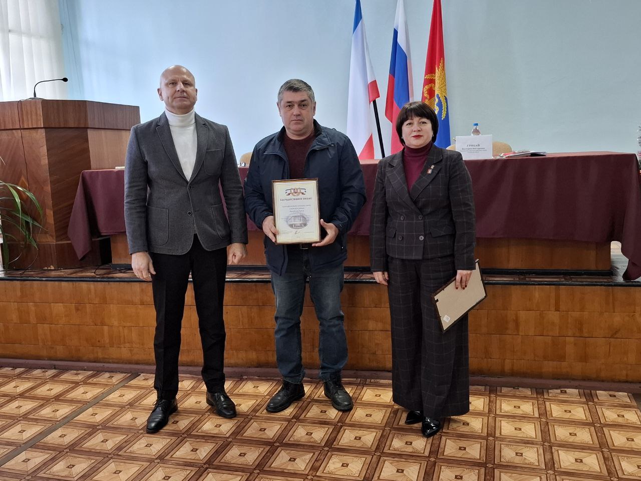 Вручили Благодарственные письма Государственного Совета Республики Крым главе администрации Краснофлотского сельского поселения Сергею Нестеренко и главе администрации Советского сельского поселения Максиму Кошевому за значительный вклад в развитие сел и активное участие в конкурсе «Лучший сельский населенный пункт Республики Крым».