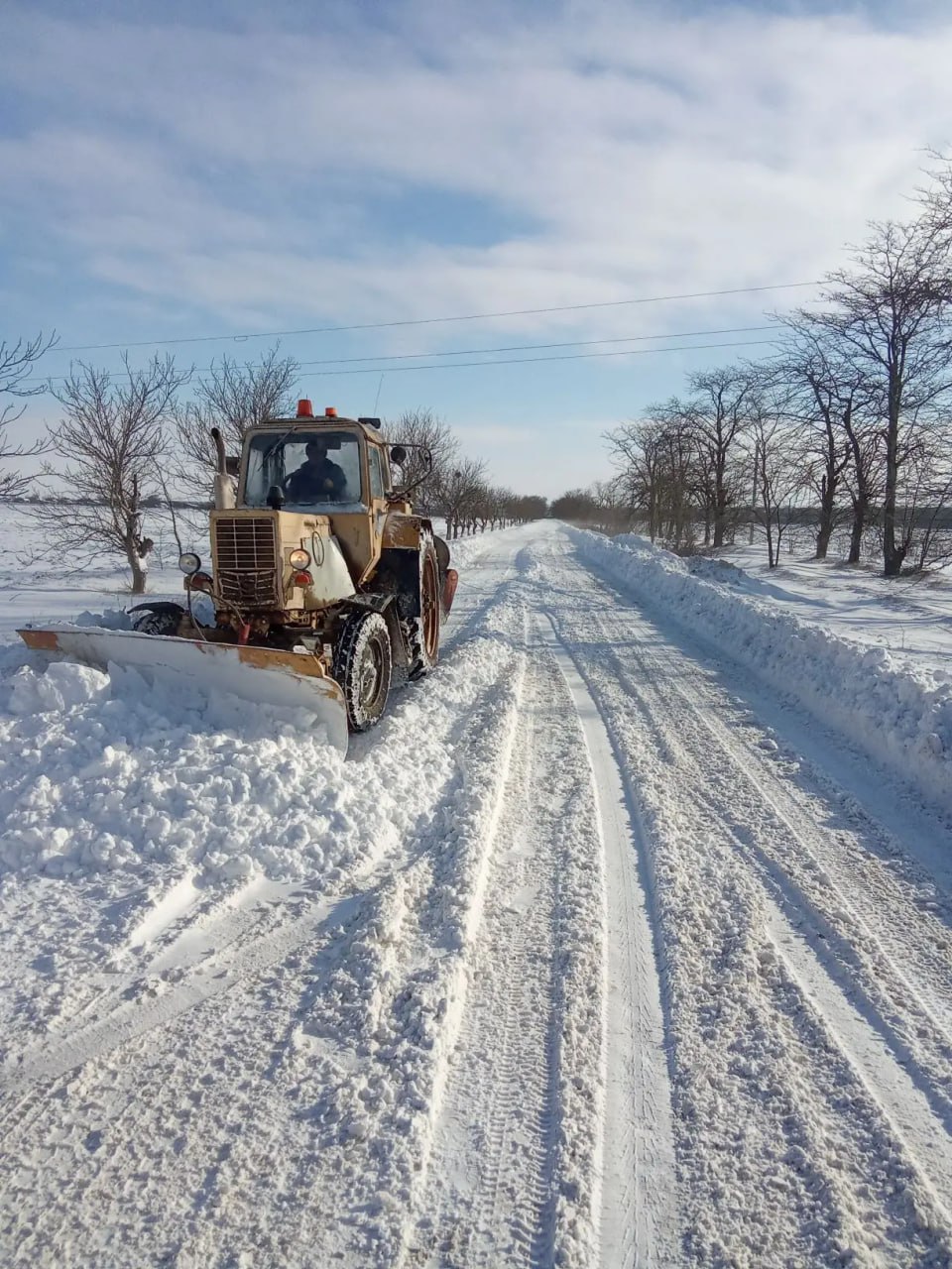 Красногвардейское ДРСУ: в работе 9 человек, 8 ед. техники. Очищено - 585км. 10т. -ПСС.