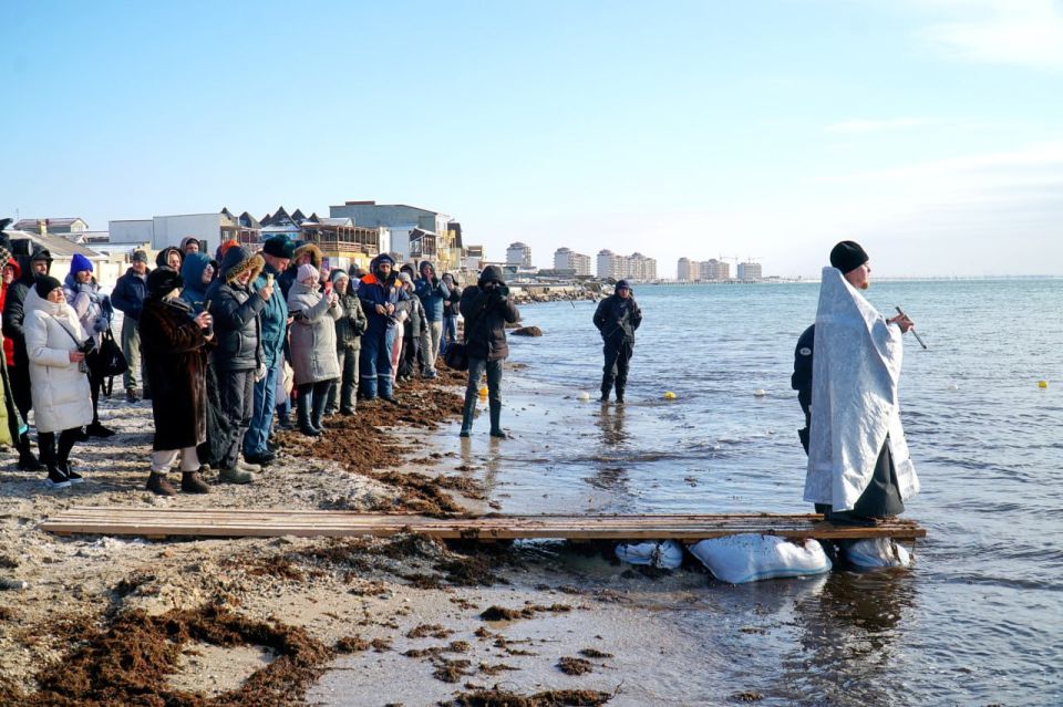 В праздник Крещения Господня в Евпатории прошли традиционные массовые купания. В мероприятии, несмотря на мороз, приняли участие множество евпаторийцев.