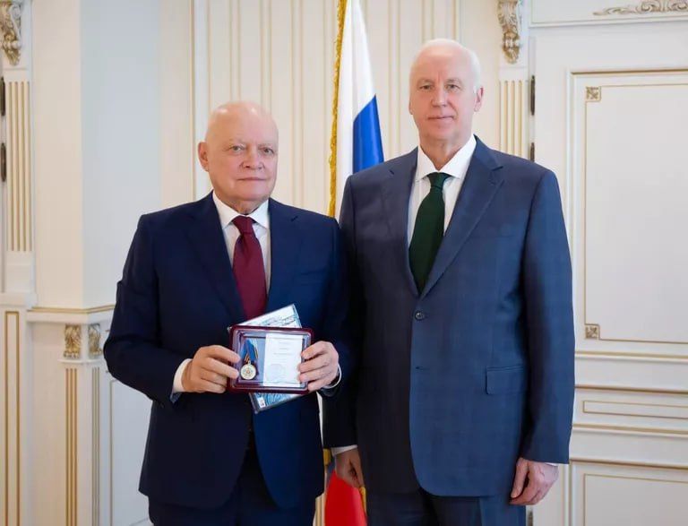 Награду гендиректору международной медиагруппы "Россия сегодня" вручил председатель СК России Александр Бастрыкин.