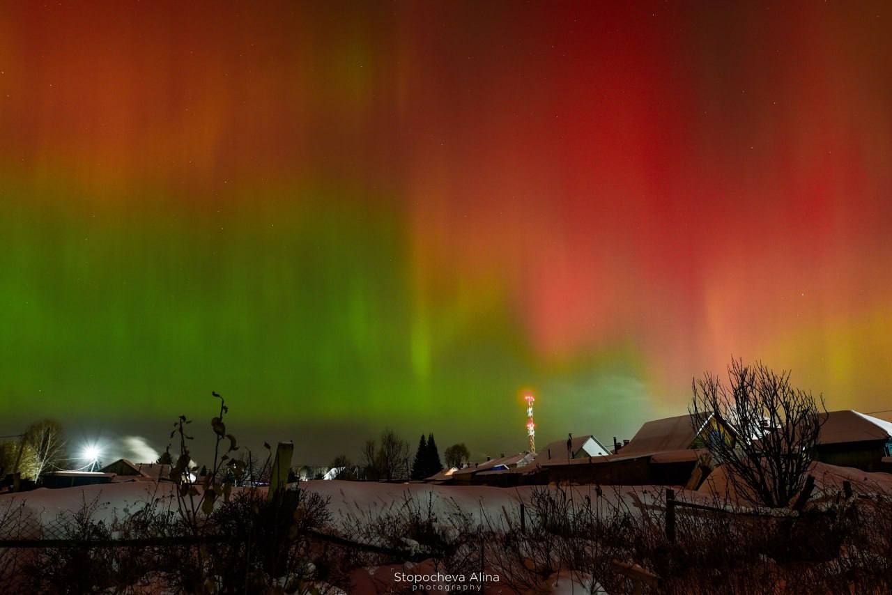 Жители нескольких регионов России наблюдали яркое северное сияние на фоне сильной магнитной бури