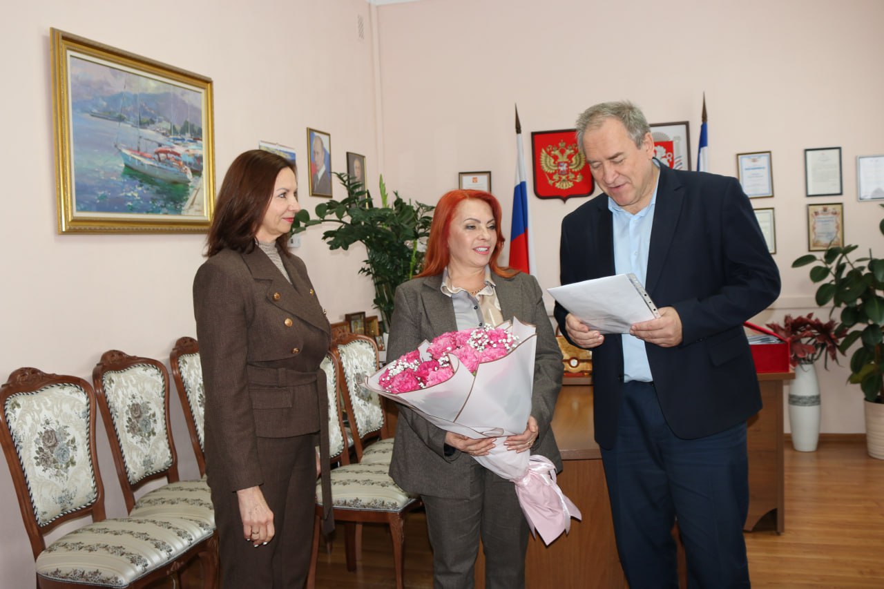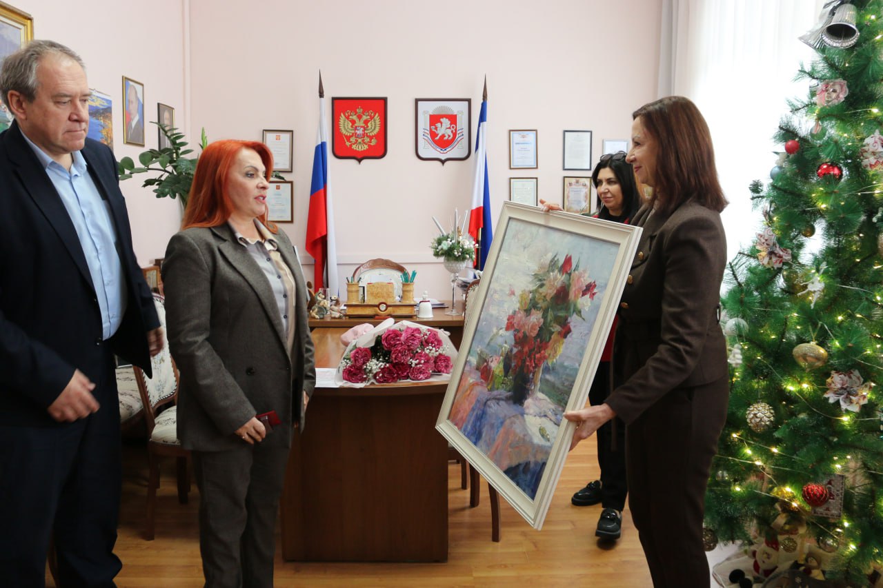 Сегодня, 19 января, министр культуры Республики Крым Татьяна Манежина и заместитель министра Андрей Терещенко поздравили с юбилеем художественного руководителя Ансамбля «Подворье» Крымской государственной филармонии, заслуженного деятеля искусств России, заслуженного артиста Республики Крым — Алёну Удалову.