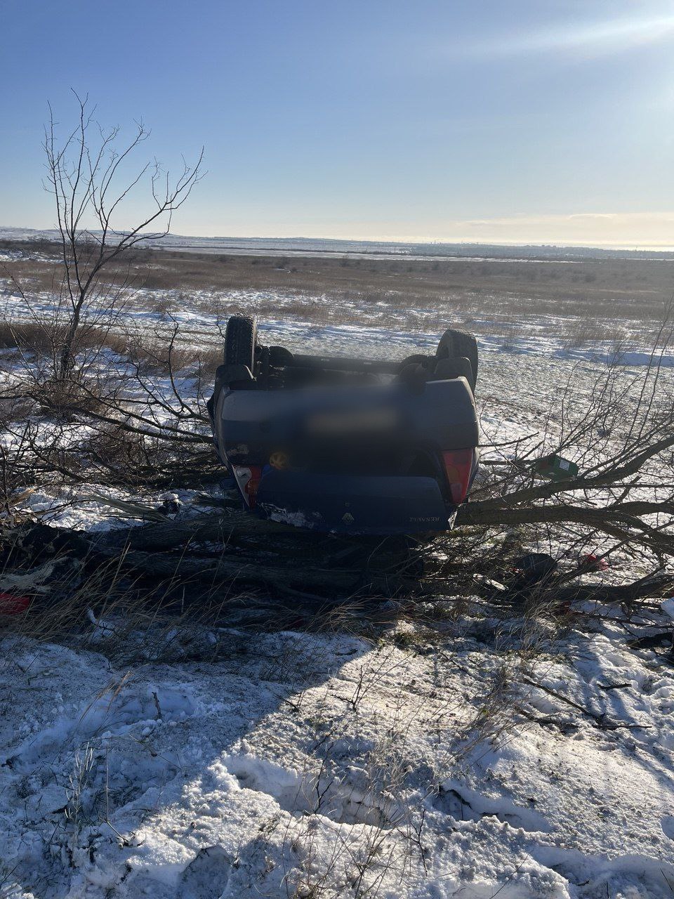 Утром на дороге Бондаренково-Войково водитель автомобиля Renault Logan не справился с управлением, в результате чего машина съехала с дороги и опрокинулась.