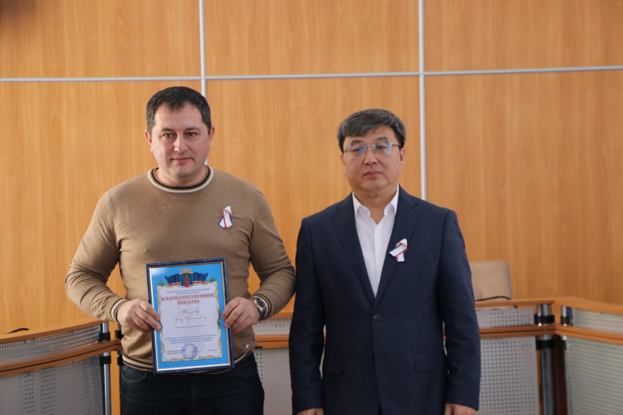 Сегодня, в День Республики Крым, с Главой муниципального образования Иваном Козыревым и прокурором города Феодосии Романом Штрыковым вручили отличившимся в различных отраслях феодосийцам заслуженные награды, а юным жителям нашего округа – первые паспорта гражданина Российской Федерации.