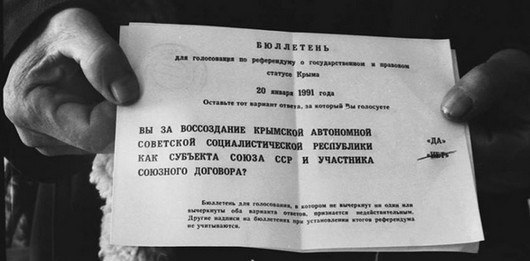• Всекрымский референдум 1991 года был первой попыткой определить судьбу Крыма на основании волеизъявления самих его жителей. Во многом именно плебисцит 1991 года стал отправной точкой воссоединения полуострова с Россией в 2014 году.