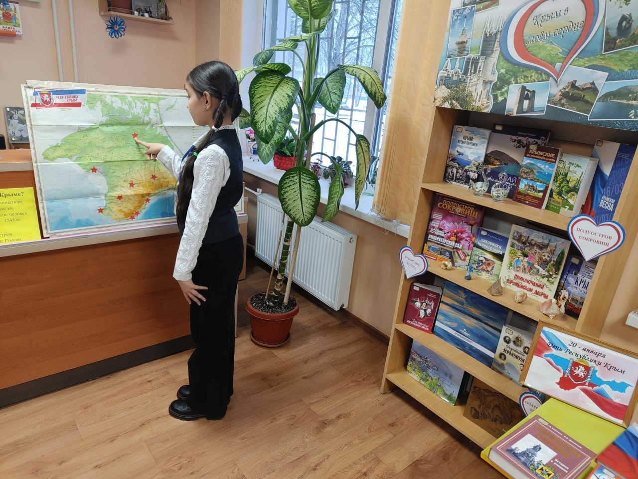 В рамках празднования Дня Республики Крым в библиотеке-филиале № 11 для учащихся 4-х классов школы № 4 им. Ф. И. Толбухина прошёл литературно-краеведческий экскурс «Горжусь тобой, Республика моя!»