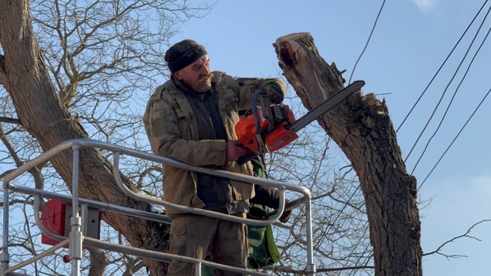 В Керчи продолжается плановая работа по уходу за деревьями.