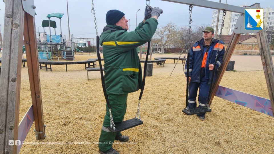 Специалисты «Парков и скверов» очистили игровые элементы и заменили две качели. Ранее на этой неделе здесь уже отремонтировали детские горки.