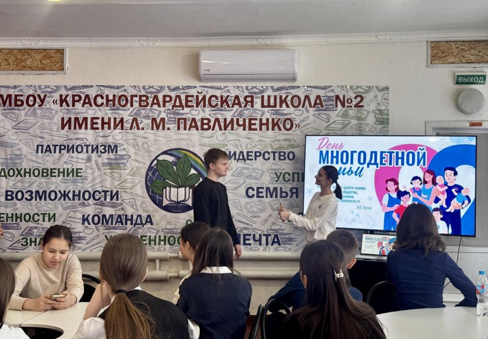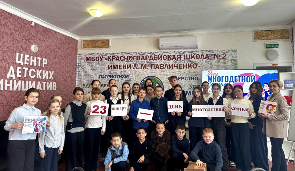Красногвардейский районный отдел ЗАГС, в рамках празднования Дня многодетной семьи, провёл тематическое мероприятие в Красногвардейской школе № 2 имени Л.М. Павличенко. Участниками встречи стали учащиеся седьмых и третьих классов.
