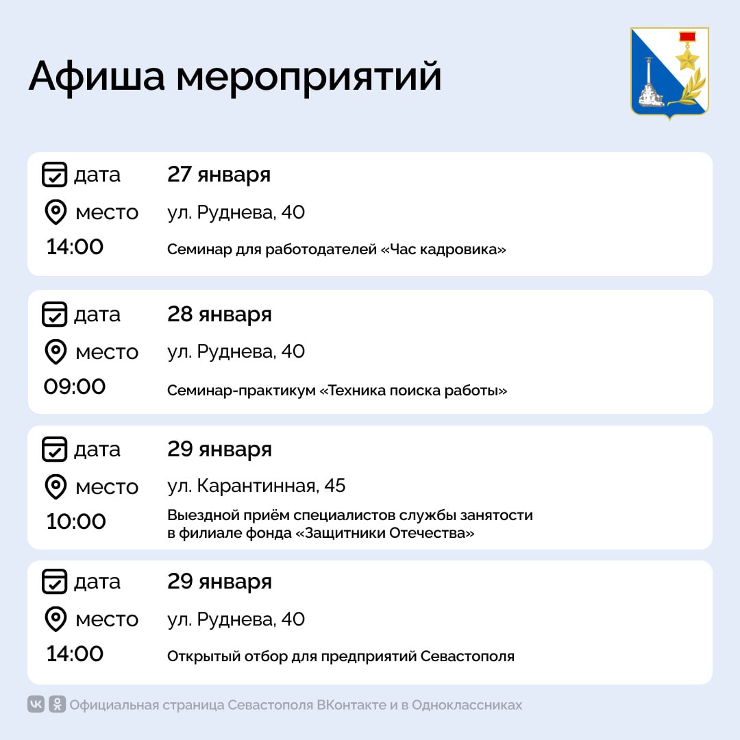 Кадровый центр «Работа России» приглашает севастопольцев на бесплатные мероприятия