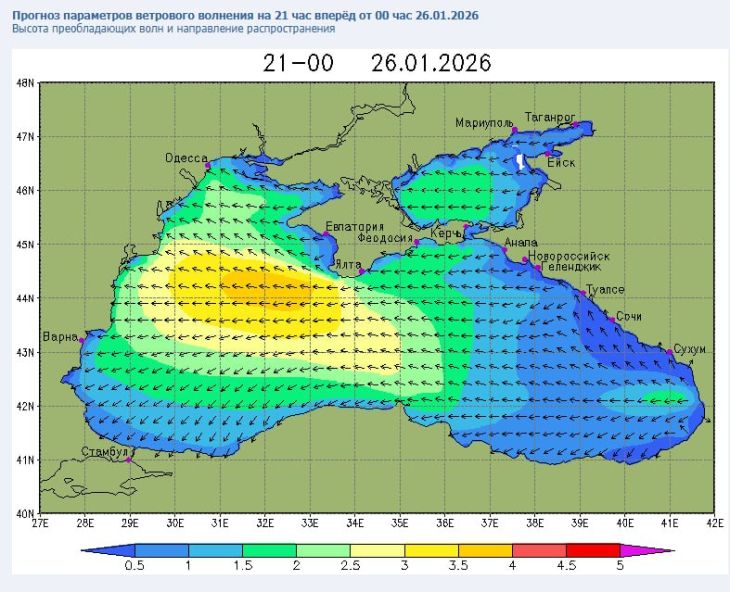 Зона катастрофического волнения выйдет на ЮБК вечером. Уровень жёсткости шторма находится в «желтой зоне» и оценивается в четыре метра, правда удар такой силы произойдёт на значительном удалении от берега. У побережья тоже не спокойно: ожидается сильный шторм с 2,5-метровыми волнами, рассказали в Единой государственной системе информации об обстановке в мировом океане.
