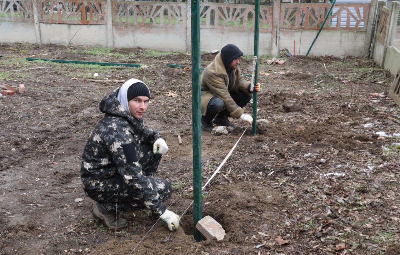 Строители подготовили лунки и приступили к установке опорных столбов.