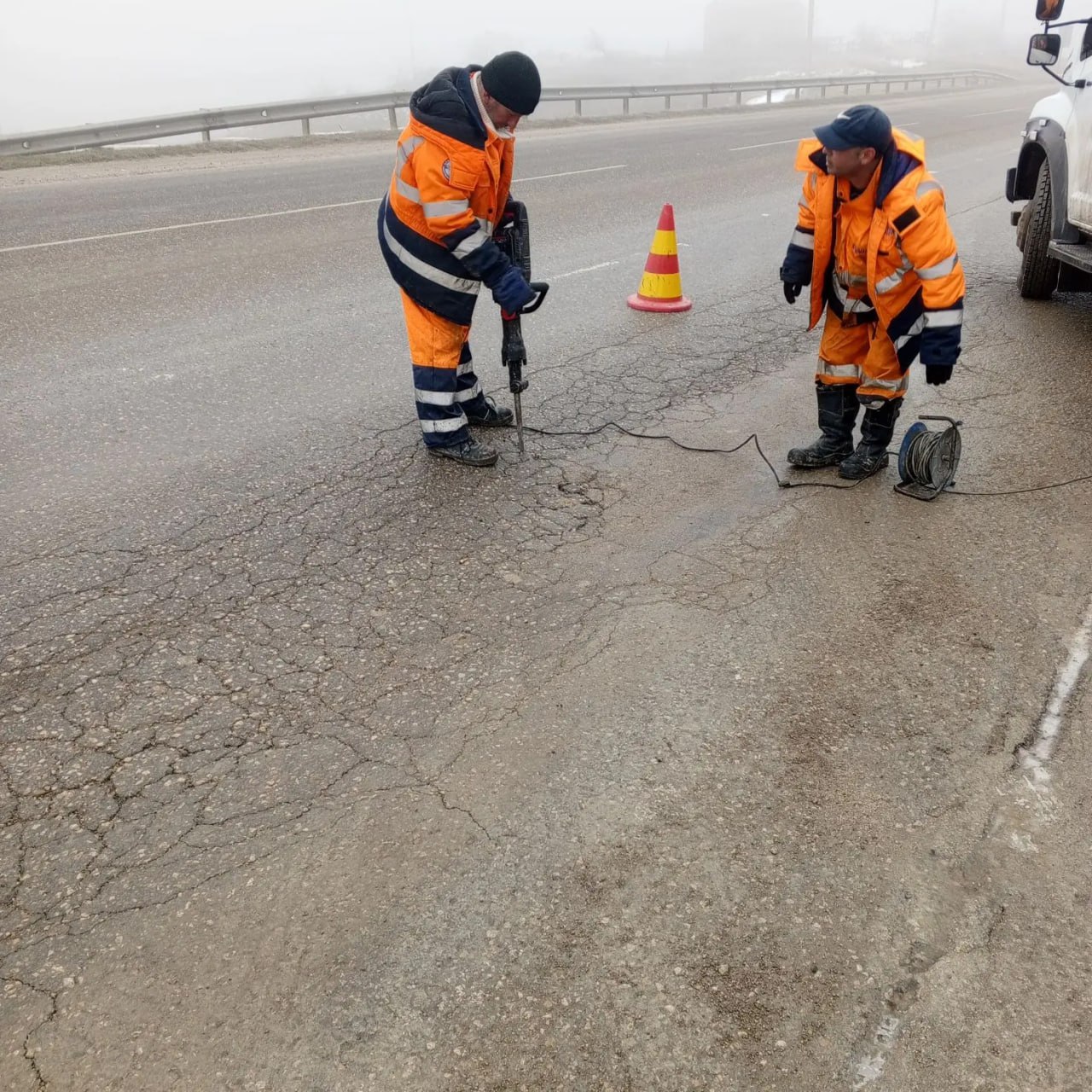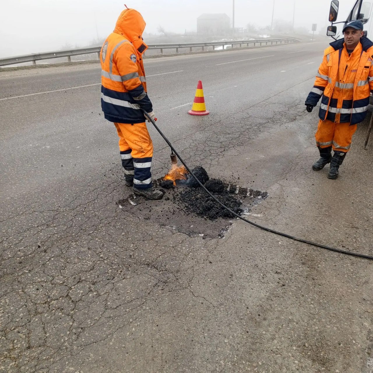 Сегодня в оперативном порядке ликвидировали повреждения дорожного полотна на въезде в Керчь.