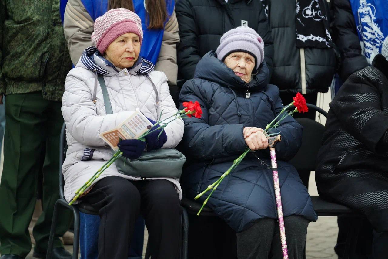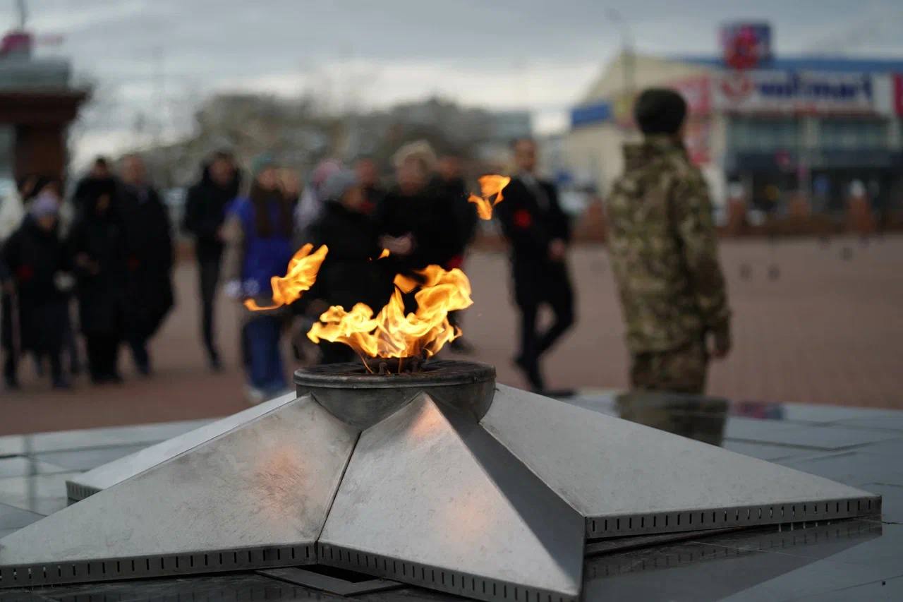 Её участниками стали жители блокадного Ленинграда, волонтёры, евпаторийцы. Присутствующие возложили цветы к Вечному огню и почтили память погибших минутой молчания.