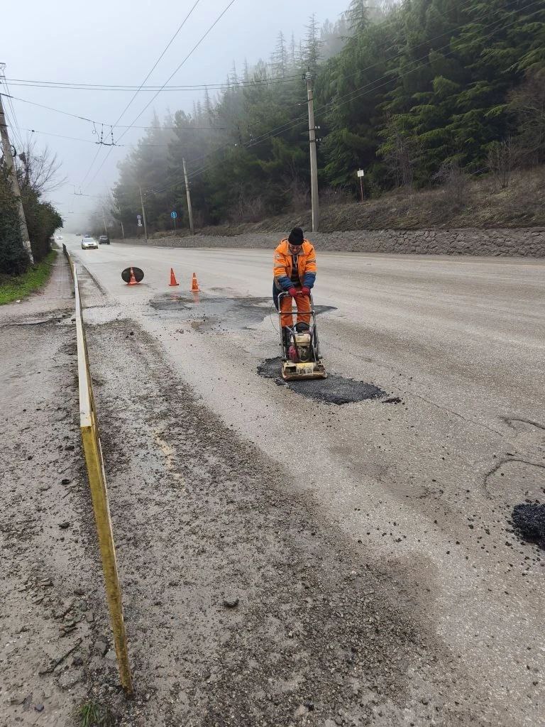 "Крымавтодор" приступил к аварийному ямочному ремонту.