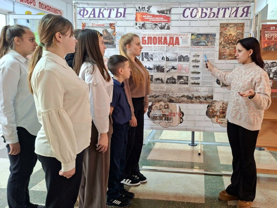 Для школьников организовали литературные гостиные, классные часы, показы документальных фильмов и информационных видеороликов. В школах оформили тематические стенды, рассказывающие о героических и трагических страницах истории блокадного Ленинграда.