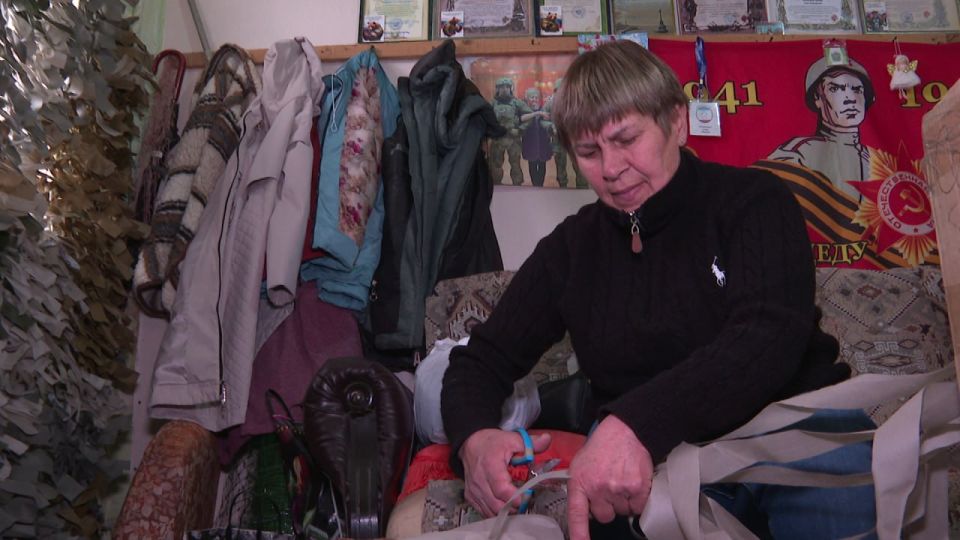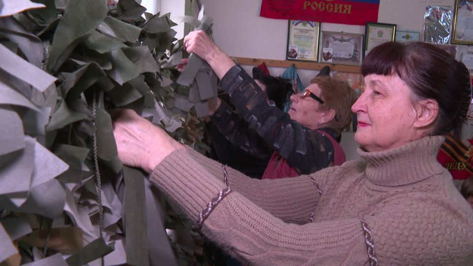 Бабушки из села Пожарского плетут маскировочные сети для бойцов подразделения «Барс-Крым»
