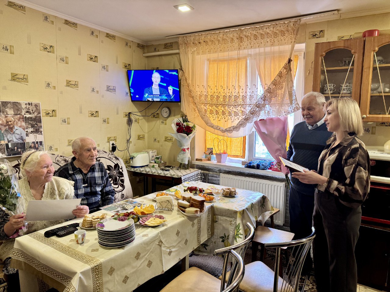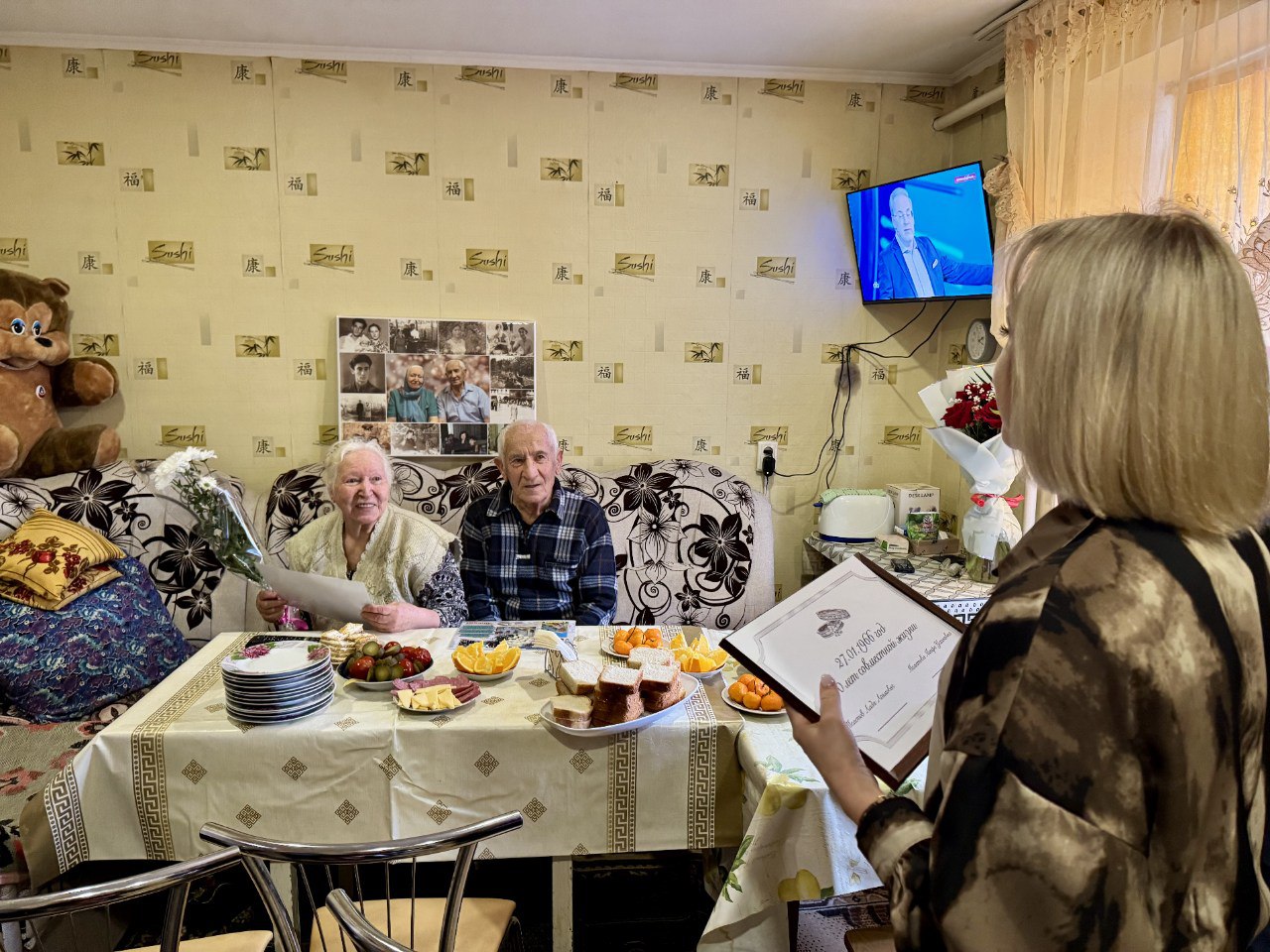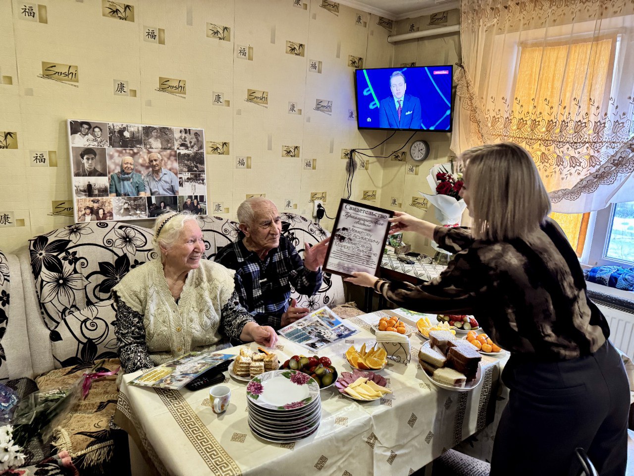 Поздравить «бриллиантовых» юбиляров совместно с отделом ЗАГС пришли заместитель главы администрации Красногвардейского района Эдем Муждабаев, старейшина посёлка Красногвардейское Толят Велиев, старейшина Красногвардейского района Мулла Масива Даниловка Нусрет Сеттаров, представители ГБУ РК «КЦСО Красногвардейского района».