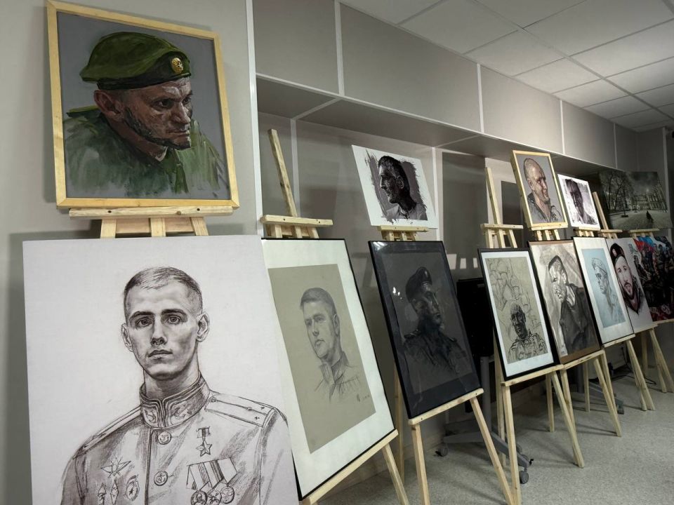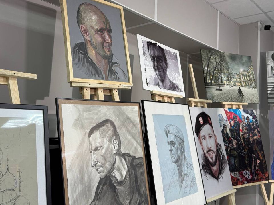 Первая — портреты участников и ветеранов специальной военной операции, созданные мастерами Санкт-Петербургской художественно-промышленной академии им. А.Л. Штиглица. Картины писались с натуры во время реабилитации бойцов.