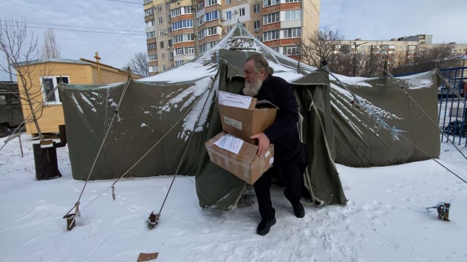 Для жителей прифронтовых сёл, которые остались без воды и электричества, священнослужители собрали постельное бельё, подушки и одеяла. Их отвезут в пункты временного размещения, где люди могут согреться, поесть и отдохнуть. А в одно из воинских подразделений доставят автомобиль-буханку. В нём маскировочные сети и угощения для бойцов.
