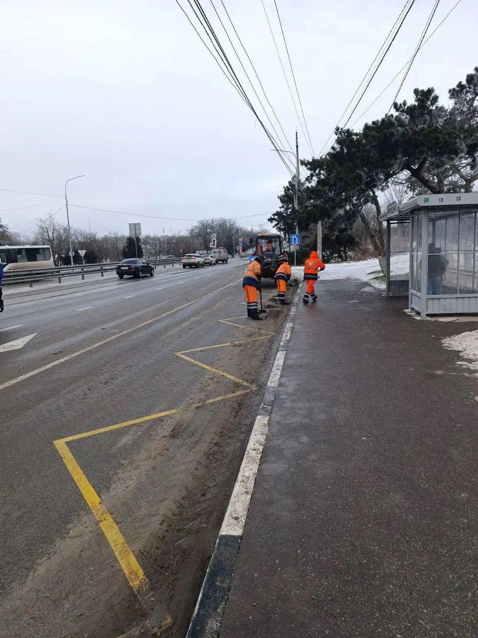 Работы выполнялись вручную – очищены автобусные остановки, заездные карманы и пешеходные зоны, сообщает "Крымавтодор".
