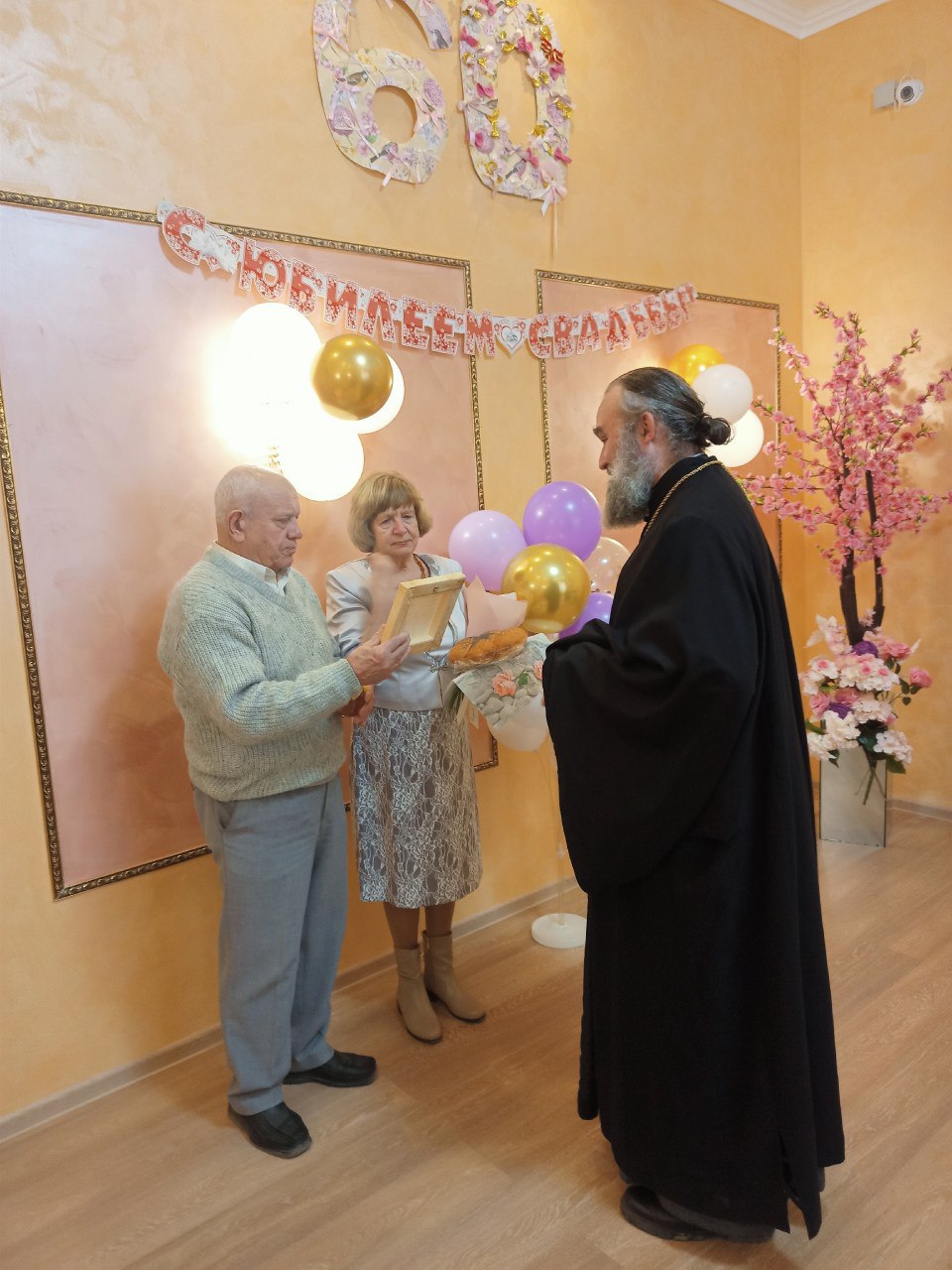 В этот важный день поздравить юбиляров с 60-летием супружеской жизни приехал и клирик Алуштинского храма Всех крымских святых и Феодора Стратилата, отец Сергий Прищип. Он пожелал супругам беречь свою любовь, свое счастье и здоровье, отдавая друг другу всю теплоту сердец.