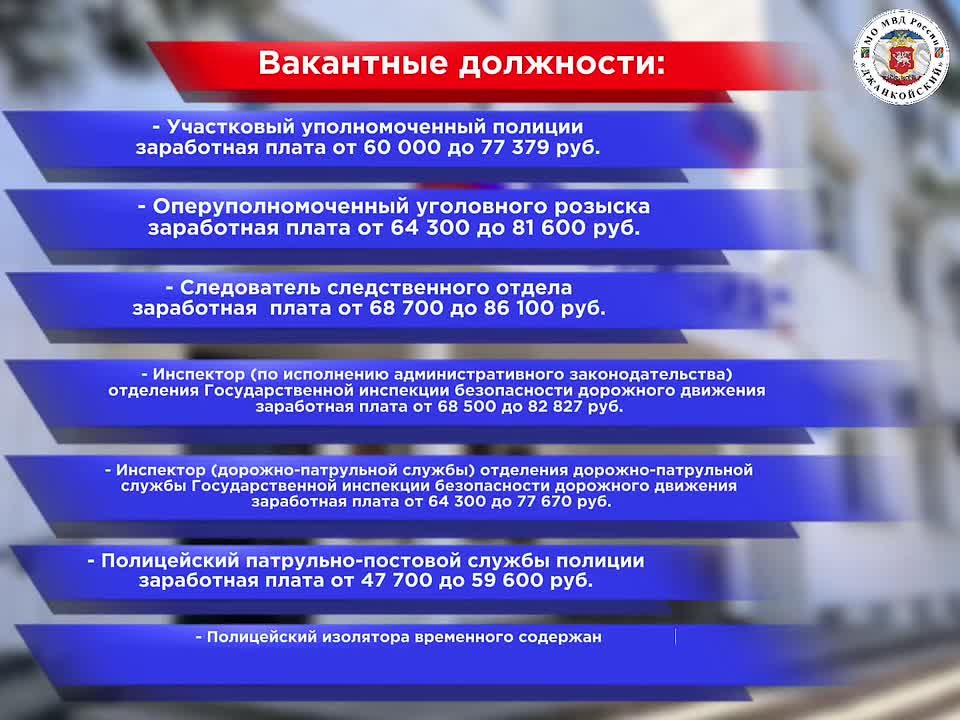 МО МВД России «Джанкойский» проводит набор граждан РФ, достигших 18-летнего возраста, имеющих высшее или среднее общее образование, не подвергавшихся уголовному преследованию и не являющихся подозреваемыми либо обвиняемыми по уголовным делам.