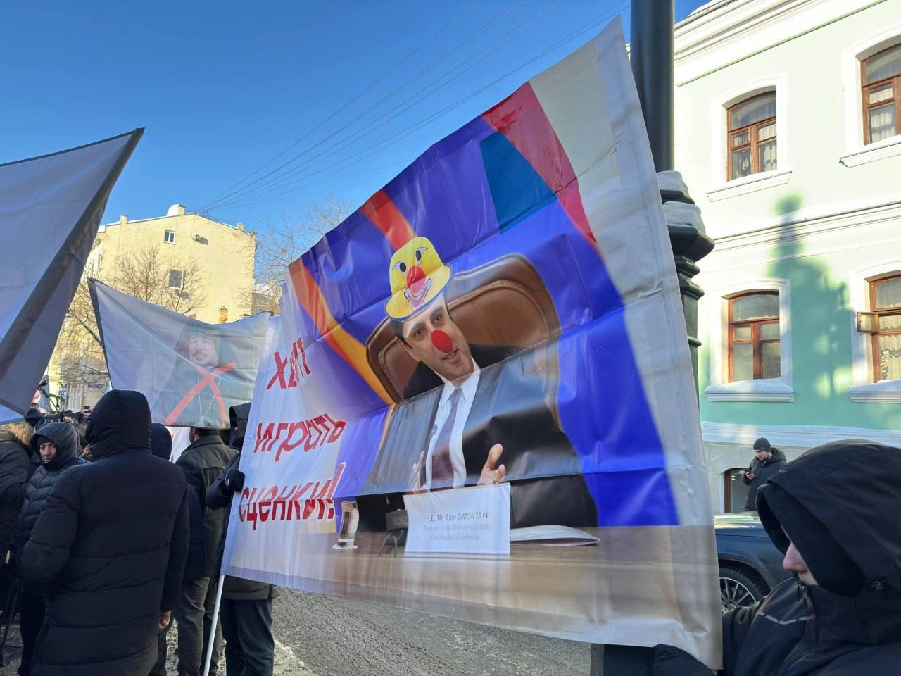 Протест прошёл именно в момент переговоров спикера парламента Армении Алена Симоняна с министром иностранных дел России Сергеем Лавровым, что стало демонстративным ответом российских армян на политику нынешних властей.