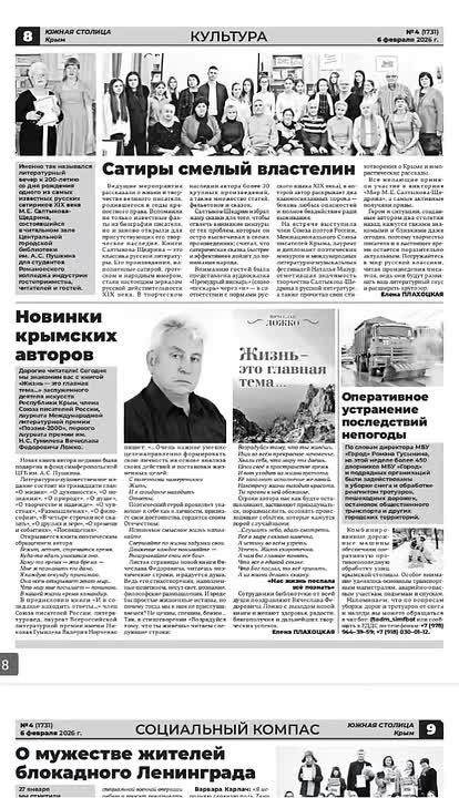Сегодня, 6 февраля, вышел новый номер городской общественно-политической газеты «Южная столица Крым».