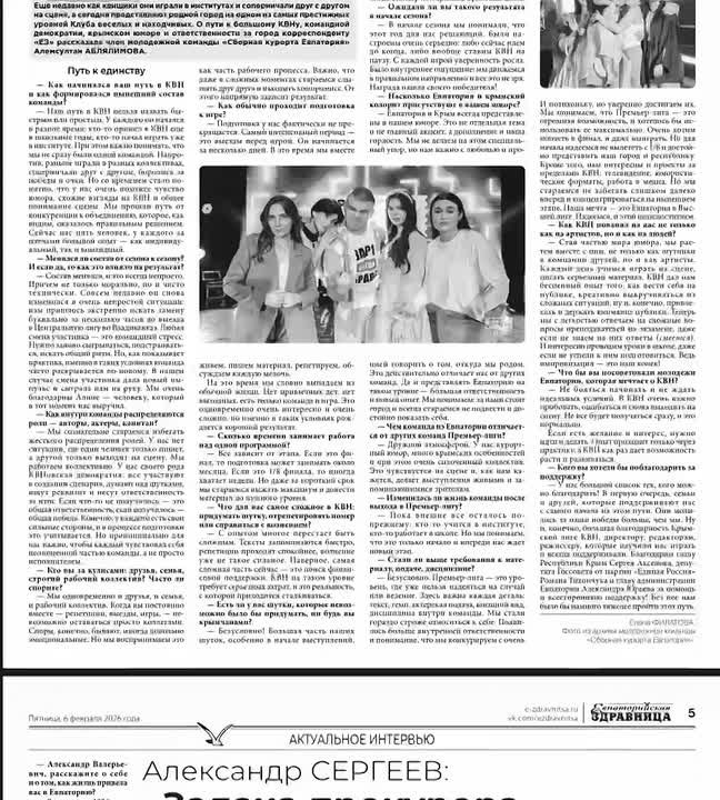 Читайте в свежем выпуске «Евпаторийской здравницы»: