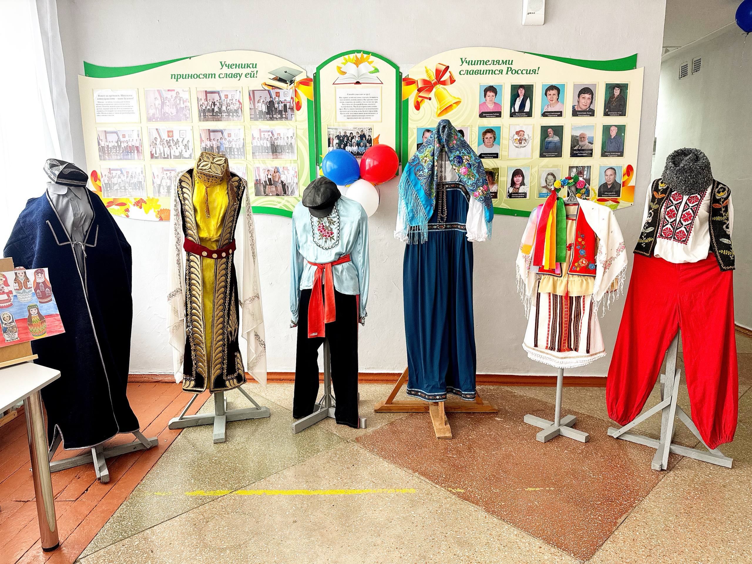 Организована тематическая выставка рисунков школьников. В их работах — искреннее видение дружбы, мира и культурного богатства нашей Родины.
