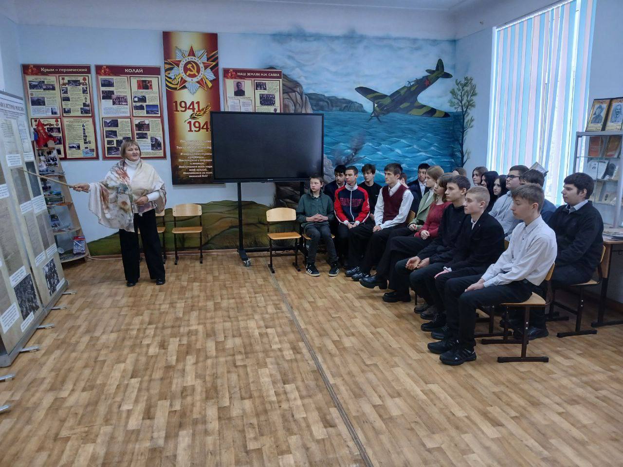 Экскурсионное сопровождение осуществляла руководитель школьного музея, которая рассказала посетителям о мужестве и стойкости крымчан в годы Великой Отечественной войны, их самоотверженном труде в тылу и подвигах на фронте. Представленные материалы позволили глубже осмыслить значение событий военных лет и роль архивных документов в сохранении исторической памяти.