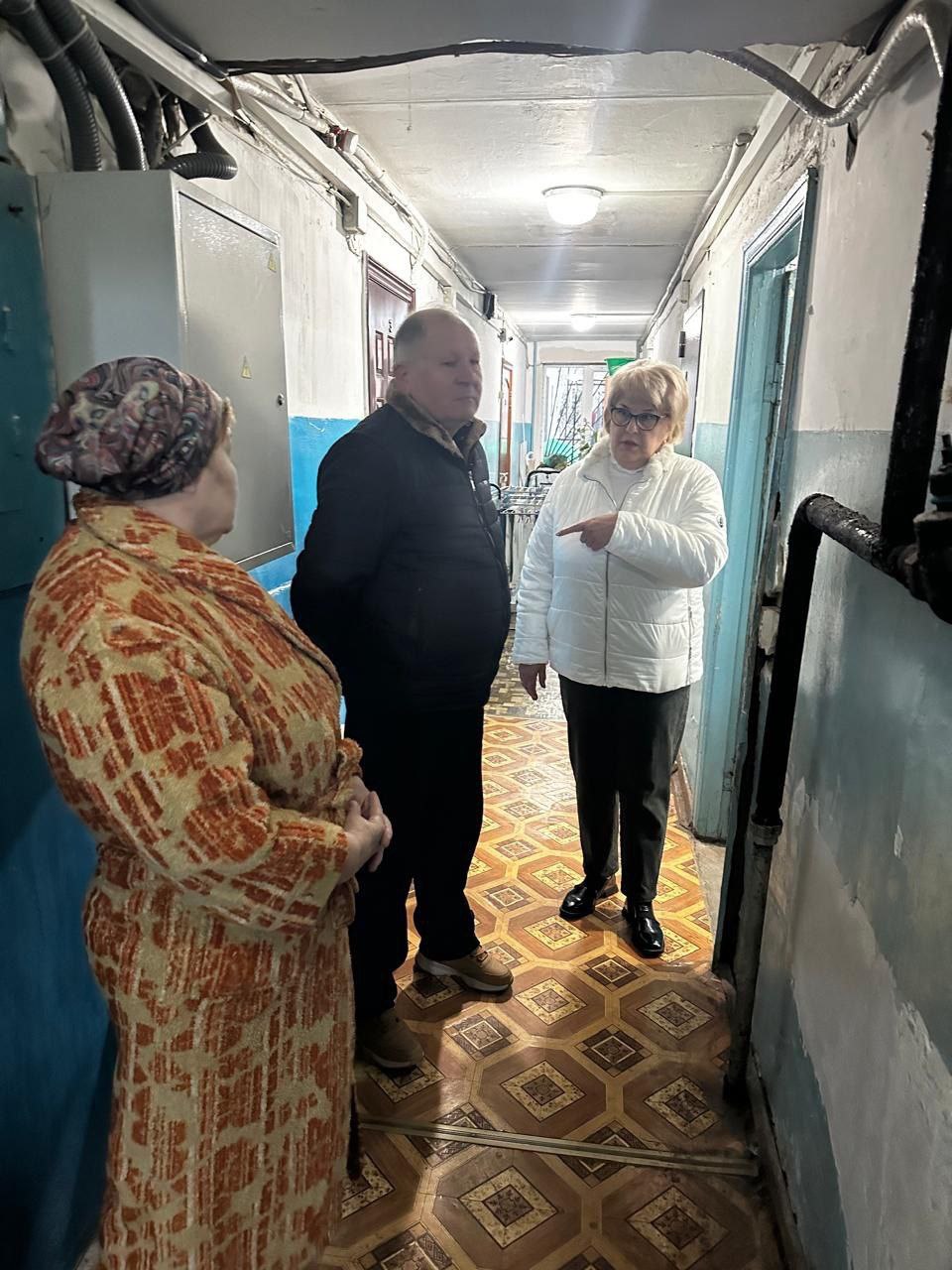 Совместно с заместителем, курирующим сферу ЖКХ, и представителями управляющих компаний осмотрели дома на улице Туристов, 1а, 5 и общежитие на территории бывшего санатория «Ветеран».