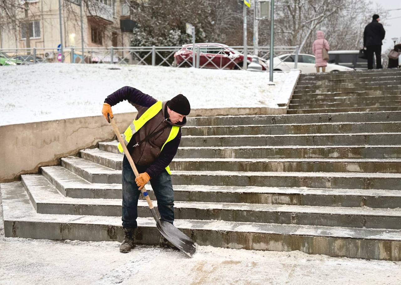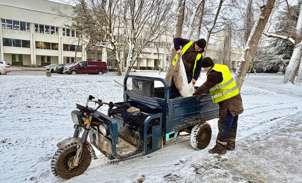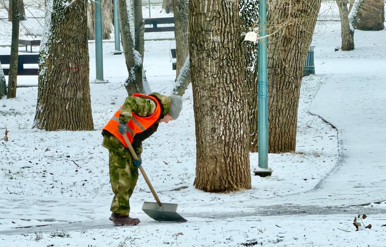 В симферопольских парках и скверах с утра идёт борьба с гололёдом
