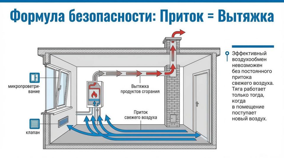 Формула безопасности проста: постоянный воздухообмен и исправная тяга. Подробнее об этом рассказываем в наших карточках.