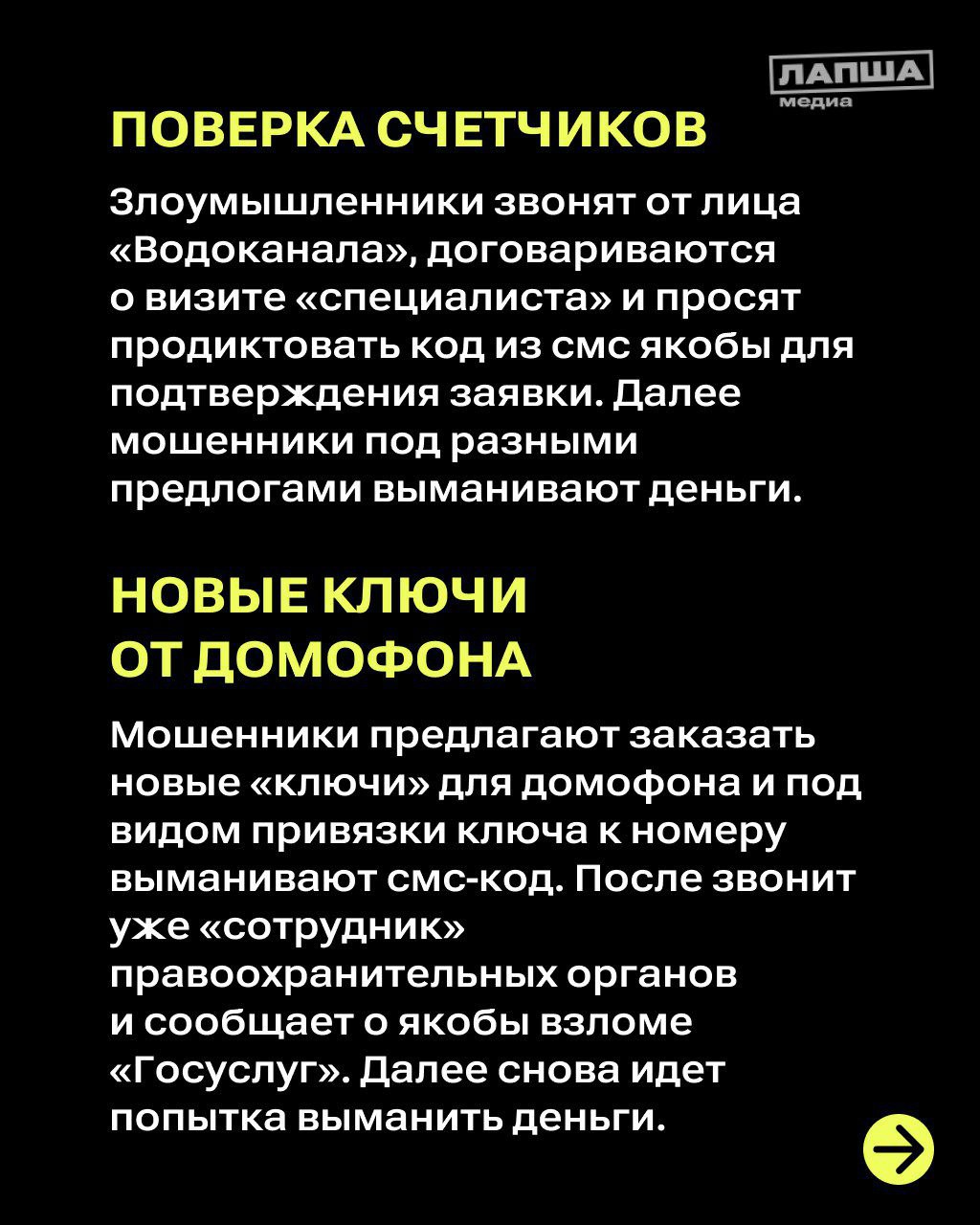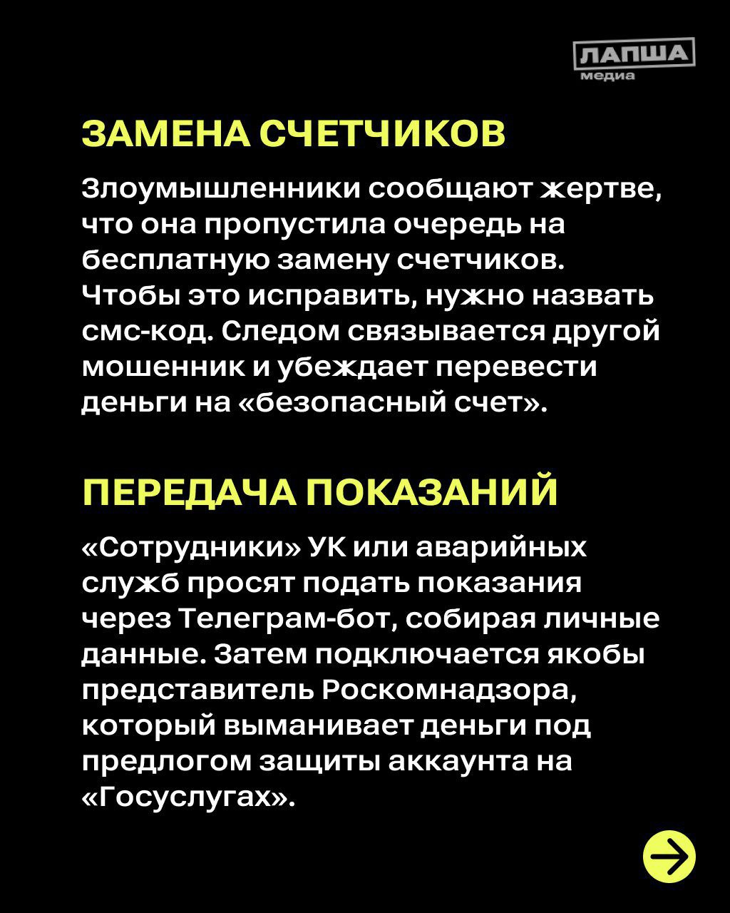 «Лапша Медиа» рассказала о распространенных сценариях обмана в сфере жилищно-коммунальных услуг. Подробнее в карточках.