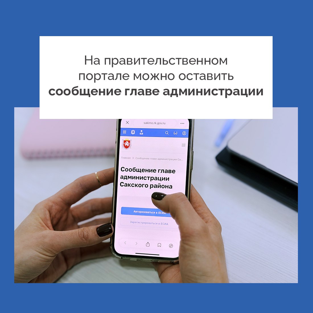 Для вашего удобства на официальном Портале Правительства Республики Крым, на странице Сакского района, создана специальная вкладка, где вы можете оставить свое обращение, предложение или вопрос главе администрации.