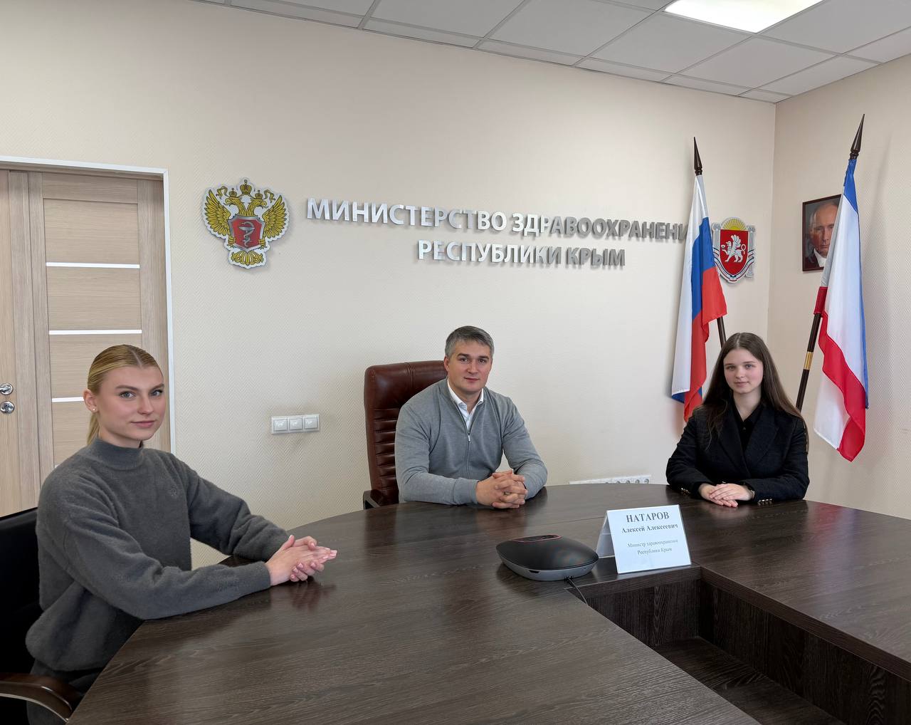 Встретился с кандидатами на должность министра здравоохранения Молодежного Правительства Республики Крым — студентками 3-го и 4-го курсов первого медицинского факультета Мединститута КФУ им. В. И. Вернадского Илией-Стефанией Болотенюк и Екатериной Ивченко.