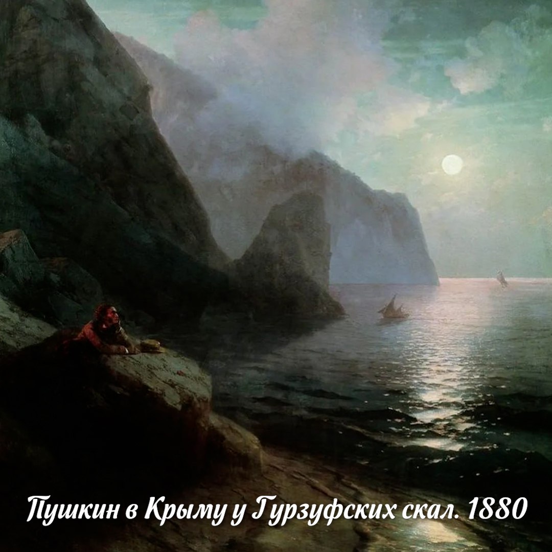 Ещё один гений — Иван Айвазовский — успешно занимался этим за 150 лет до того, как придумали все эти ваши жипити. Художник создал целую серию картин, изображающих Пушкина в Крыму. Писал не с натуры, кое-где — коллабился с другими легендами. Вот вам зашкаливающая концентрация грандиозности: Чёрное море, Пушкин и Айвазовский.