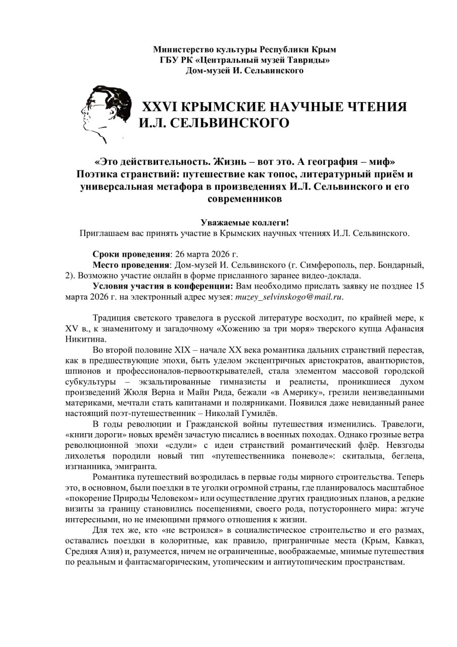 Приглашаем вас принять участие в XXVI Крымских научных чтениях И.Л. Сельвинского.