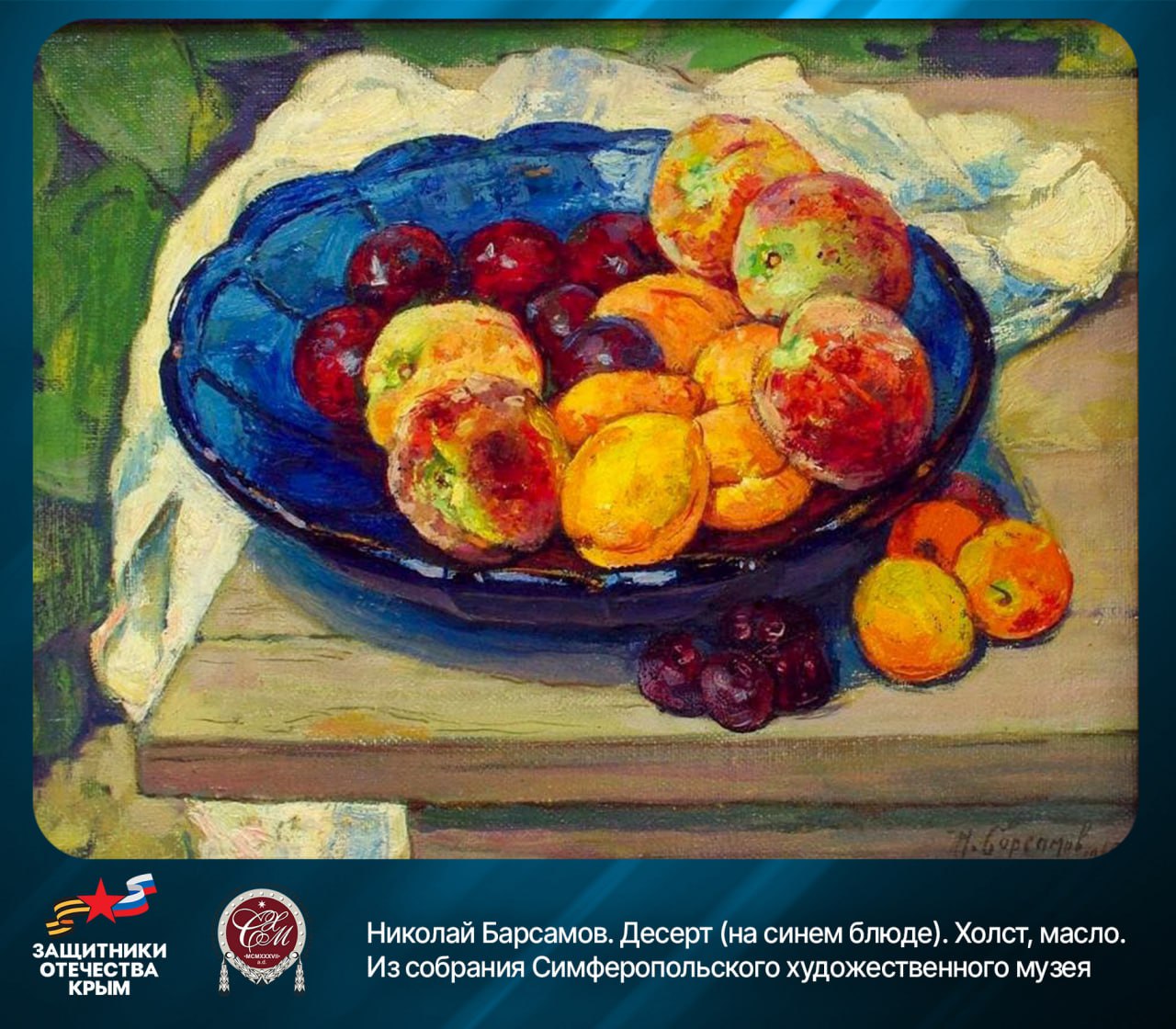 Николай Барсамов. Десерт (на синем блюде). Холст, масло. Из собрания Симферопольского художественного музея