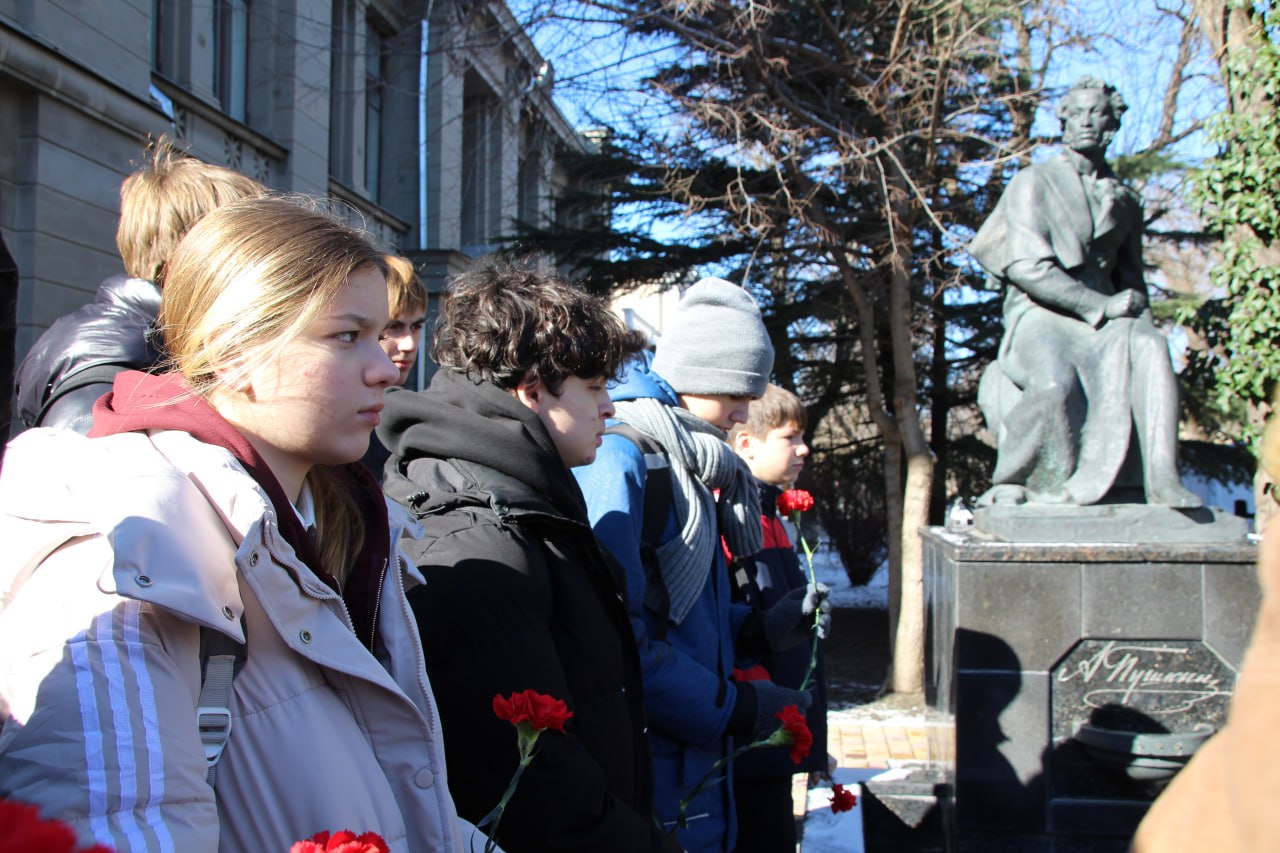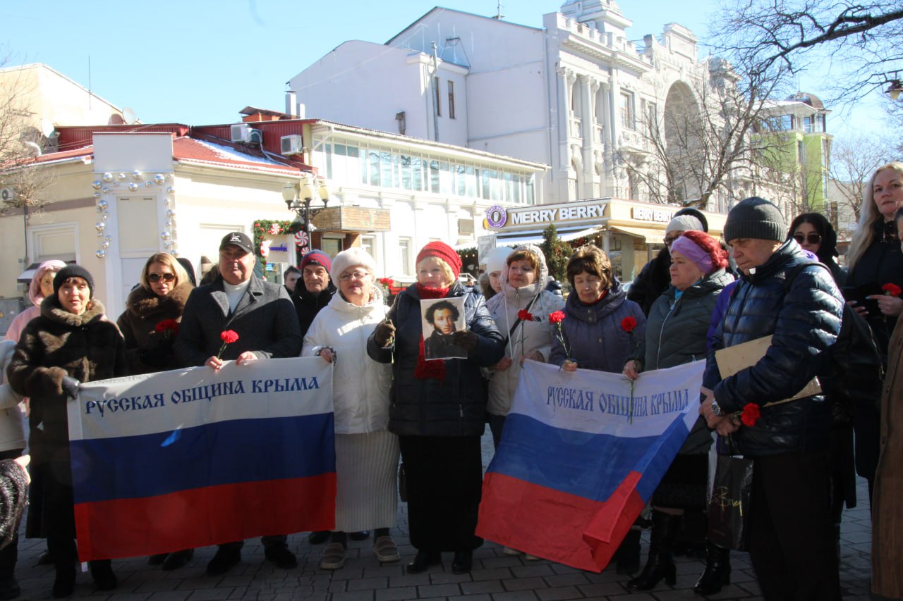 10 февраля, в День памяти великого русского поэта, члены Русской общины Крыма вместе с заместителем Председателя Общественной палаты Республики Крым, членом Общественной палаты РФ и заместителем председателя Русской общины Крыма Владимиром Резановым возложили цветы к памятнику Александру Сергеевичу Пушкину в центре Симферополя.