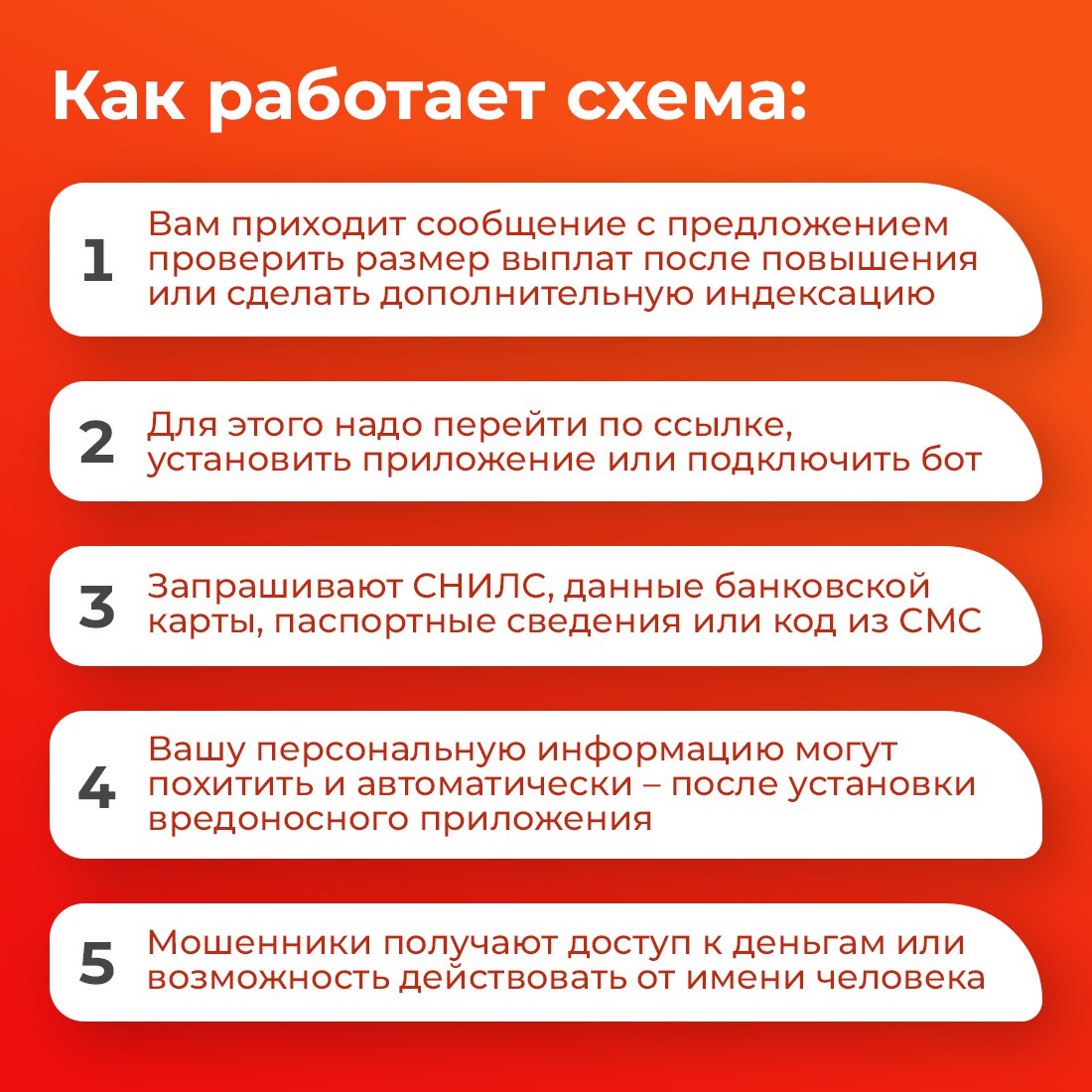 Злоумышленники пишут пенсионерам и получателям пособий в интернете и мессенджерах. Аферисты предлагают проверить выплаты после их повышения. Для этого надо перейти в чат-бот или установить приложение. На самом деле никакой информации о размере выплат в них нет. Это вредоносные сервисы, которые дают мошенникам возможность получить доступ к персональным данным жертвы.
