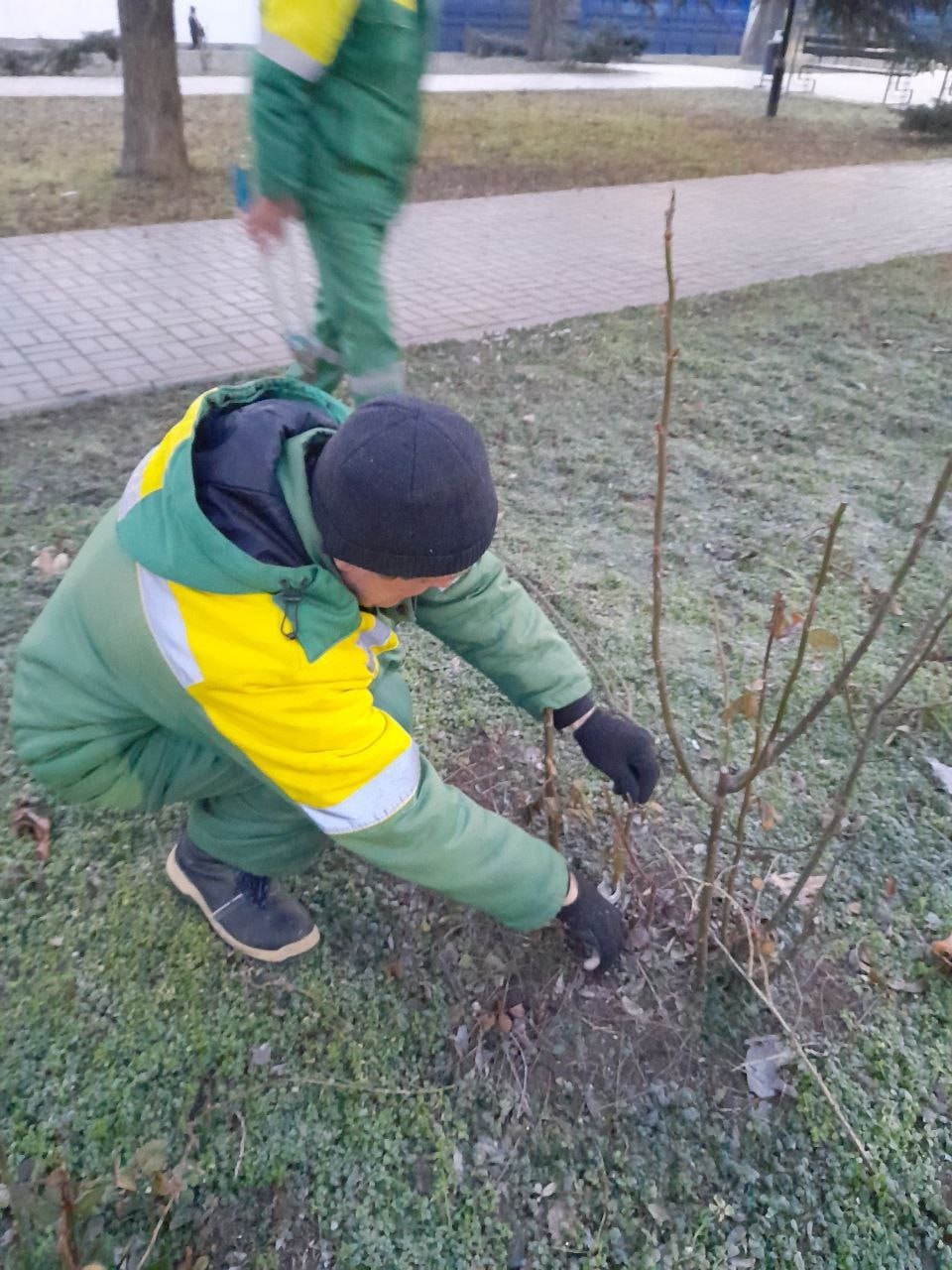 Озеленители проводят работу по формированию крон декоративных кустарников, расчистке клумб, обрезке роз.