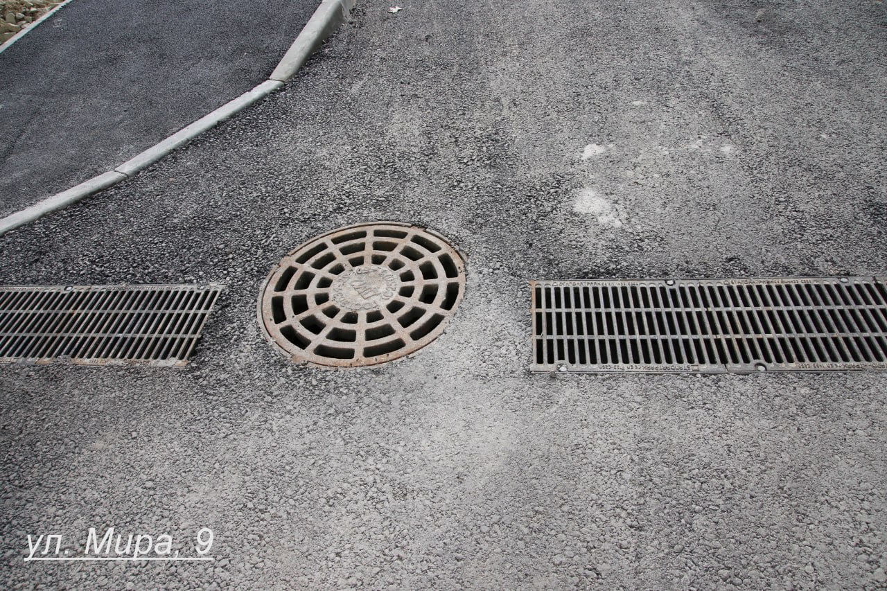 - Мира, 6 и Мира, 9 - где ещё была проведена очень важная работа по обустройству ливневой системы. Теперь можно не беспокоиться о лужах и подтоплениях после дождя – вода будет уходить туда, куда нужно!