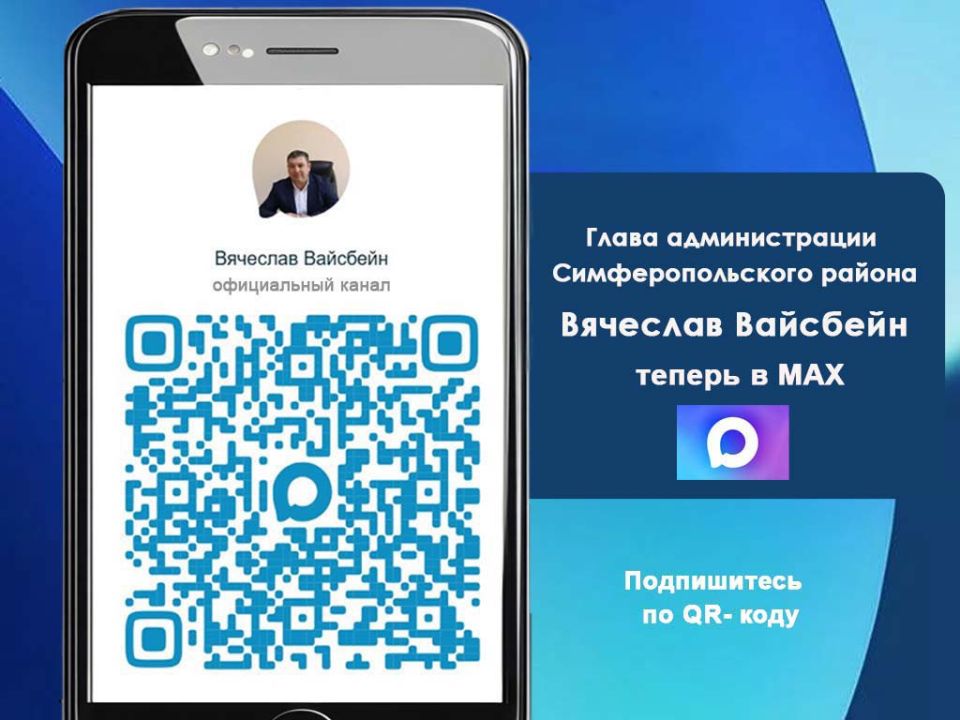 Для оперативной связи и информирования о работе главы администрации Симферопольского района Республики Крым В.Ю. Вайсбейн создан официальный канал в мессенджере MAX!